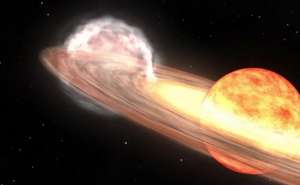 Der aufgeblähte Riesenstern ist etwa 75-mal größer als unsere Sonne und stößt ständig Wasserstoff-Gas ins Weltall ab. Das Gas sammelt sich in einer rotierenden Scheibe und strömt von dort aus auf den etwa erdgroßen Weißen Zwerg herab. Irgendwann hat sich dann so viel Wasserstoff auf der Oberfläche des Weißen Zwergs angesammelt, dass es zu einer thermonuklearen Explosion kommt. Innerhalb kürzester Zeit verbrennt der Wasserstoff durch Kernfusion zu Helium. Diese Reaktion setzt eine gewaltige Menge an Energie frei – und so leuchtet der Stern für wenige Tage hell auf, über 1000 bis 3000 mal heller als sonst.