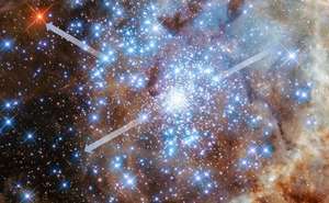 Der enge Doppelstern Mel 34 rast mit einer Geschwindigkeit von 170.000 Kilometern pro Stunde aus dem Sternhaufen R136 in der Großen Magellanschen Wolke heraus. Jetzt hat ein Forschungsteam aus den Niederlanden und Spanien herausgefunden, warum: Vor 212.000 Jahren kam es im dichten Zentrum des Sternhaufens zu einer engen Begegnung, an der insgesamt fünf Sterne beteiligt waren. Infolge dieser Begegnung wurden alle diese Sterne als rasende Ausreißer aus dem Sternhaufen herauskatapultiert, wie die Wissenschaftler im Fachblatt „Physical Review Letters“ berichten.