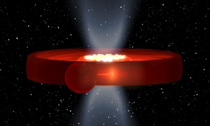 Jetzt präsentieren Santana und seine Kollegen ein komplexes Modell für den Materieeinfall in das Schwarze Loch von Swift J1357. „Die beobachteten Eigenschaften lassen sich am besten mit der Anwesenheit einer verdeckenden toroidalen Struktur erklären, die sich langsam nach außen bewegt“, so die Forscher. Diese Struktur sei nur deshalb sichtbar, weil die Erde nahezu, aber nicht exakt in der Ebene der Akkretionsscheibe liege. „Diese Struktur spielt vermutlich eine Schlüsselrolle beim Materieeinfall in der inneren Scheibe, sowie bei der Bündelung der Jets.“ Allerdings müssten weitere Beobachtungen zunächst zeigen, ob es ähnliche Strukturen auch bei anderen Schwarzen Löcher gäbe oder ob es sich bei Swift J1357 um einen Ausnahmefall handele.