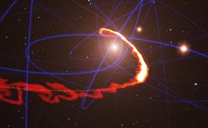 Garching - Es ist eine einmalige Gelegenheit für die Astronomen: Eine große Gaswolke rast mit hoher Geschwindigkeit dicht am supermassiven Schwarzen Loch im Zentrum der Milchstraße vorüber. Wie Beobachtungen eines internationalen Forscherteams an der Europäischen Südsternwarte ESO zeigen, hat der Kopf der durch die Schwerkraft des Schwarzen Lochs auseinandergezogenen Wolke bereits den Ort der größten Annäherung, das Perizentrum, durchquert. Die Forscher erhoffen sich aus den Beobachtungen der Passage genaue Erkenntnisse über die Umgebung des supermassiven Schwarzen Lochs. Rund ein Jahr werde es dauern, bis die gesamte Wolke das Perizentrum passiert hat, so die Astronomen im Fachblatt „Astrophysical Journal“.