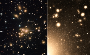 „Kugelsternhaufen sind Fossilien der allerersten Sternentstehung in Abell 1689“, erläutert John Blakeslee vom Herzberg Institute of Astrophysics im kanadischen Victoria. „Unsere Untersuchung zeigt, dass die frühe Sternentstehung dort besonders effektiv war, wo die Dichte der Dunklen Materie am größten ist.“ Etwa 80 Prozent der Materie im Kosmos besteht nach heutigen Kenntnissen aus bislang unbekannten Elementarteilchen, die sich allein über ihre Schwerkraft bemerkbar machen. Die normale Materie, aus der Galaxien, Sterne und Planeten bestehen, hat sich durch die Schwerkraft im jungen Kosmos dort angesammelt, wo die Dunkle Materie am dichtesten ist – und dort sind entsprechen auch die ersten Sterne entstanden.
