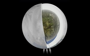 Pasadena (USA) - Am Südpol des Saturnmonds Enceladus gibt es einen zehn Kilometer tiefen Ozean. Das zeigt die genaue Analyse der Bahn der amerikanischen Raumsonde Cassini durch ein internationales Forscherteam. Der Ozean ist unter einem 30 bis 40 Kilometer dicken Eispanzer verborgen, der den gesamten Mond umhüllt. Das Wasser-Reservoir könnte die Eis- und Dampf-Fontänen speisen, die vom Südpol aus mehrere tausend Kilometer weit ins All hinaus schießen, so die Wissenschaftler im Fachblatt „Science“.