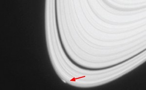 Viele der 62 bekannten Monde des Planeten Saturn bestehen nahezu vollständig aus Wassereis. Auffällig ist zudem der Trend, dass die Trabanten umso größer sind, je weiter von Saturn entfernt sie ihre Bahn ziehen. Auf diesen Fakten aufbauend haben Planetenforscher die These entwickelt, dass die meisten Monde im Ringsystem entstanden, langsam nach außen gewandert und dabei zu immer größeren Körpern verschmolzen sind. Die Entdeckung von „Peggy“ zeigt nun erstmals, dass zumindest der erste Schritt dieses Szenarios, die Entstehung eines kleinen Trabanten am Rand des Rings, tatsächlich möglich ist.