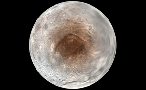 Flagstaff (USA) - Der Plutomond Charon trägt ein rotes Käppchen. Das zeigen die Aufnahmen der Raumsonde New Horizons, die im Juli 2015 das Pluto-System durchquerte. Ein Forscherteam aus den USA und Frankreich hat nun die klimatischen Bedingungen auf Charon über Millionen von Jahren modelliert und so die Ursache der rötlichen Verfärbung gefunden: An den Polen des Plutomonds sammelt sich Methan und wandelt sich durch energiereiche Strahlung in rotbraune Tholine. Die Schicht aus diesen organischen Makromolekülen könne etwa 30 Zentimeter dick sein, schätzen die Wissenschaftler im Fachblatt „Nature“.