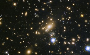 Flagstaff (USA) - Die größten Galaxien zeigen bereits im jungen Kosmos eine ähnliche Orientierung wie ihre Galaxienhaufen – die sich wiederum entsprechend der Materieverteilung in ihrer Umgebung ausrichten. Das zeigt die Beobachtung von 65 Galaxienhaufen im jungen Kosmos mit dem Weltraumteleskop Hubble durch ein internationales Forscherteam. Das deute darauf hin, dass die großräumige Struktur im Kosmos die Entstehung und Entwicklung der dominierenden Haufengalaxien entscheidend beeinflusst habe, so die Wissenschaftler im Fachblatt „Nature Astronomy“.